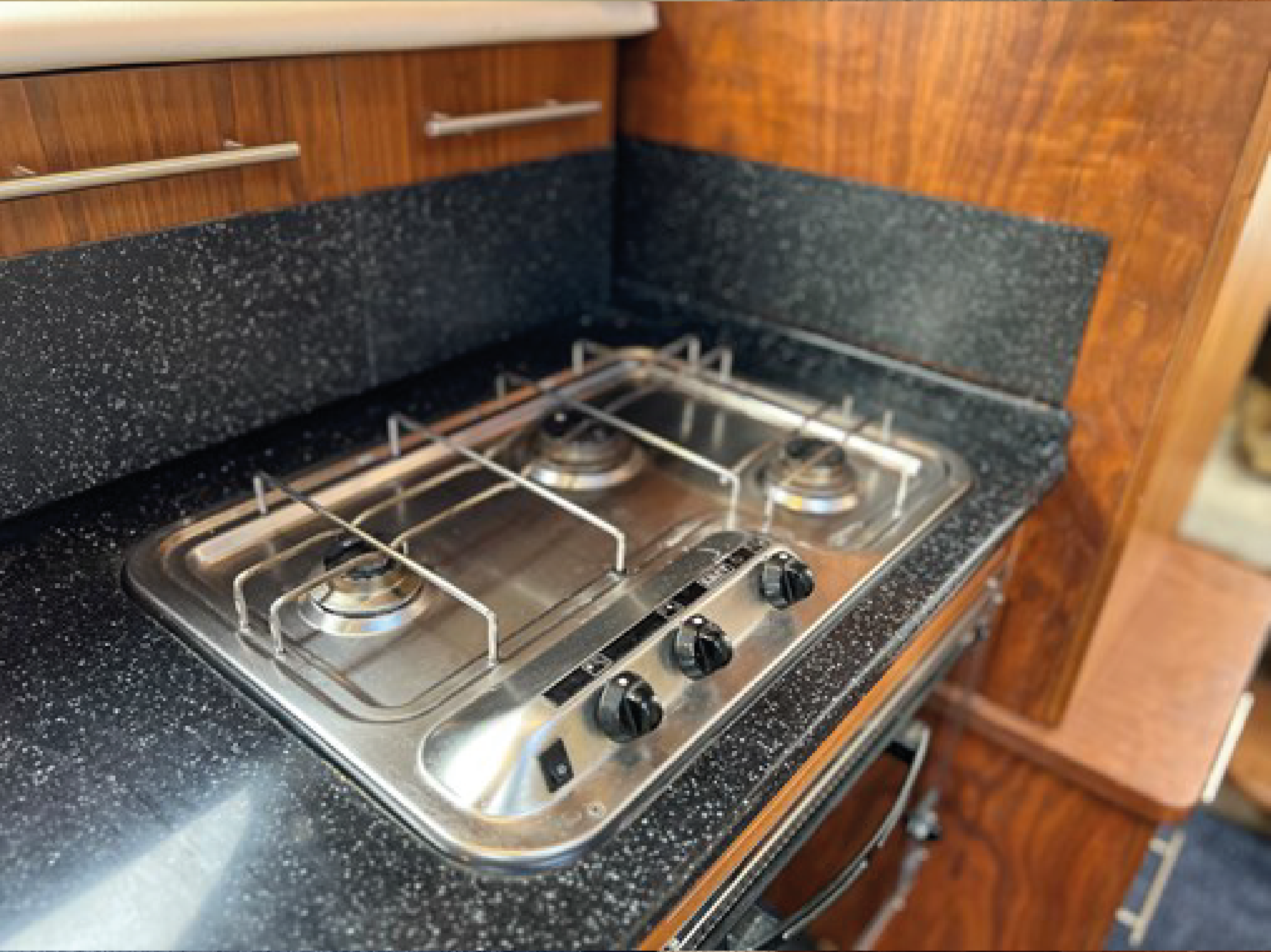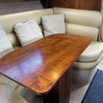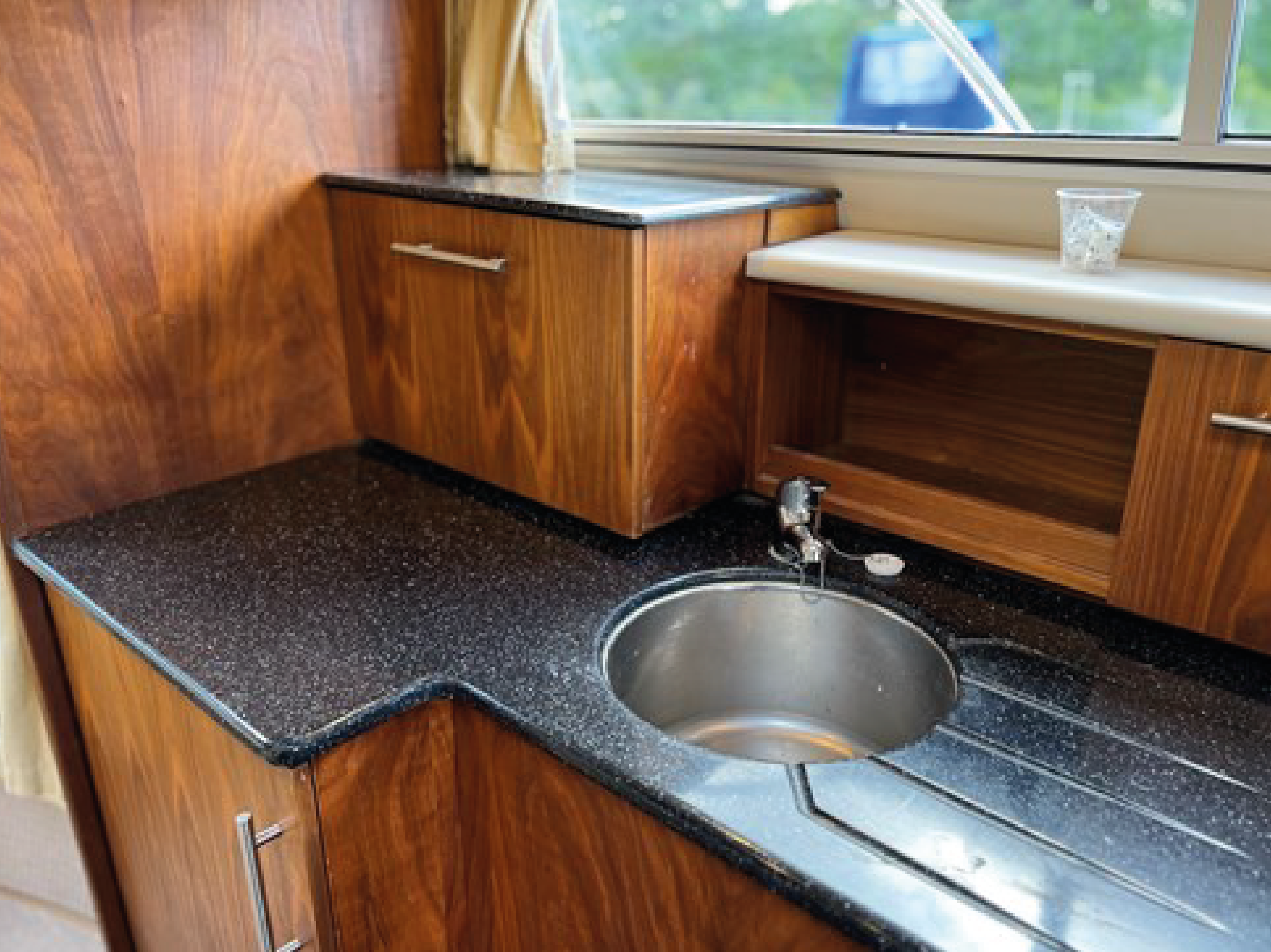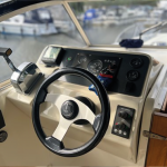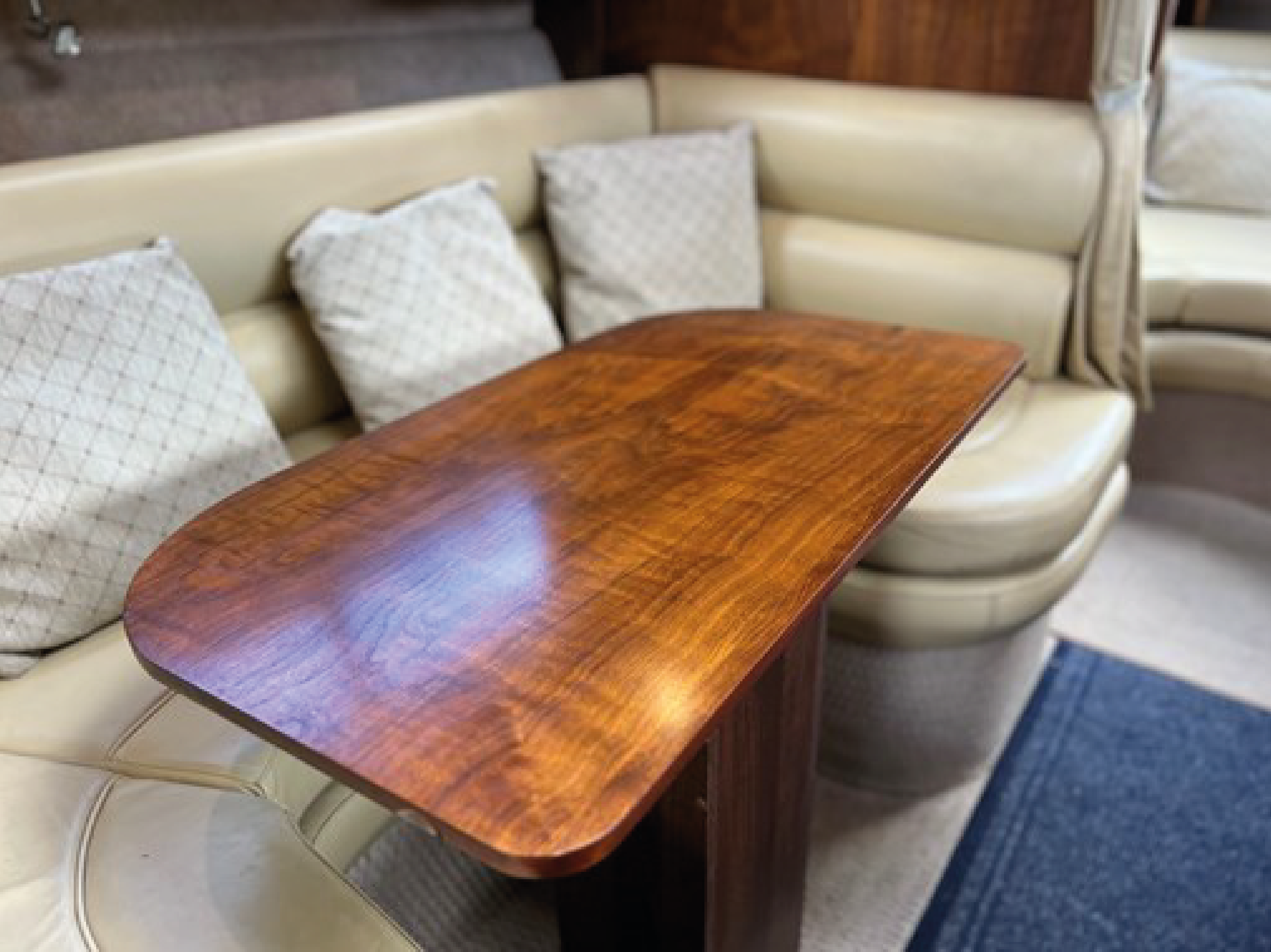 The interior was custom-built for the original owner, with no expense spared. Finished in American Black Walnut, the beautifully crafted interior layout includes a separate forward cabin, enhancing privacy and comfort.